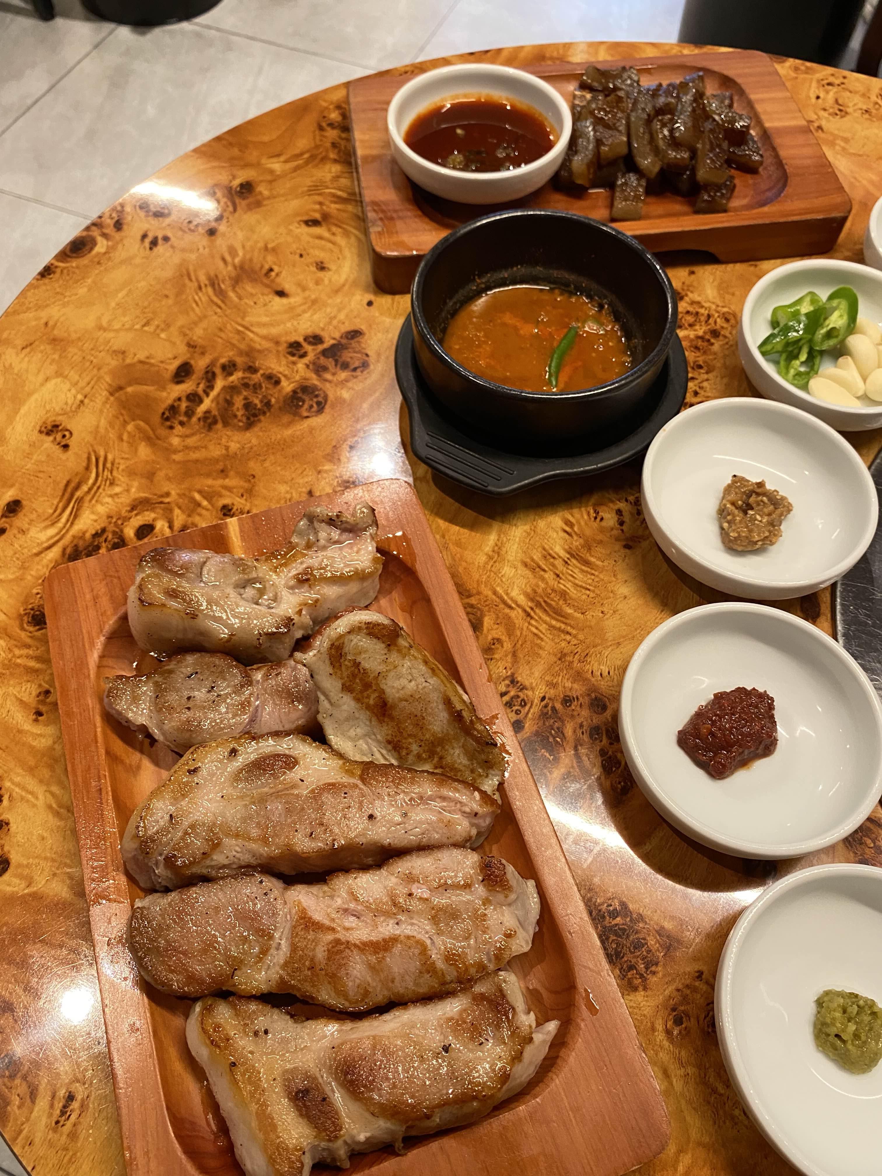 둘이가면 목살이랑 삼겹이랑 섞어먹기힘들다는것..